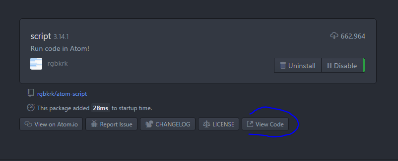 Here are the steps i took: . * open atom * press ctrl+shift+p and write view installed packages and click on the correct element in the drop down menu * look at the left part of the screen click install * search for script * ins.